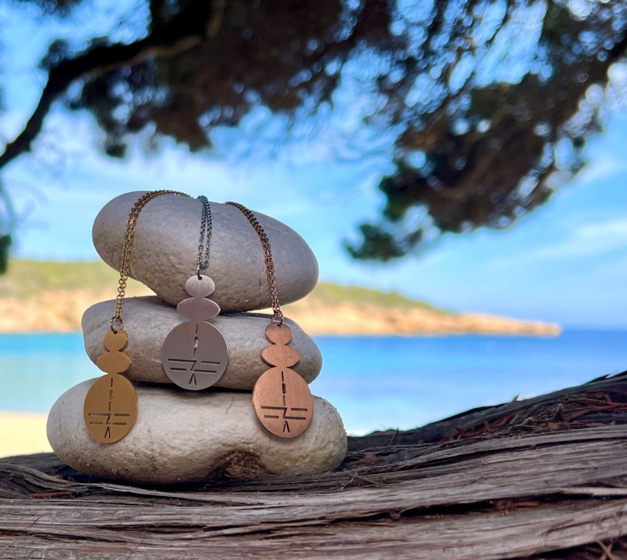 De ‘steenmannetjes’ staan voor kracht, stabiliteit en verbondenheid met een plek. Door het dragen van de Seen in Ibizasieraden voel je je op een bijzondere manier verbonden met dit betoverende eiland, waar je ook ter wereld bent. De sieraden zijn van hoge kwaliteit en verkrijgbaar in meerdere kleuren. In alle sieraden komen de letters ‘Ibiza’ terug. De sieraden passen helemaal in de huidige boho chic trend en de Ibiza look die door velen zo geliefd is.